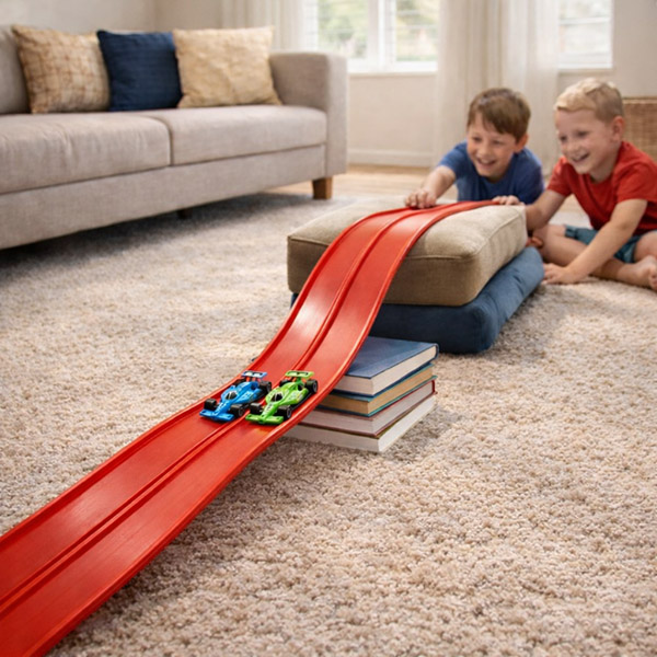 Otroci lahko progo oblikujejo z vsakdanjimi predmeti ter ustvarjajo skoke, tunele in zanke, kar spodbuja domišljijo in reševanje problemov namesto ponavljajoče se igre. Tako ostanejo zbrani več ur brez zaslonov.